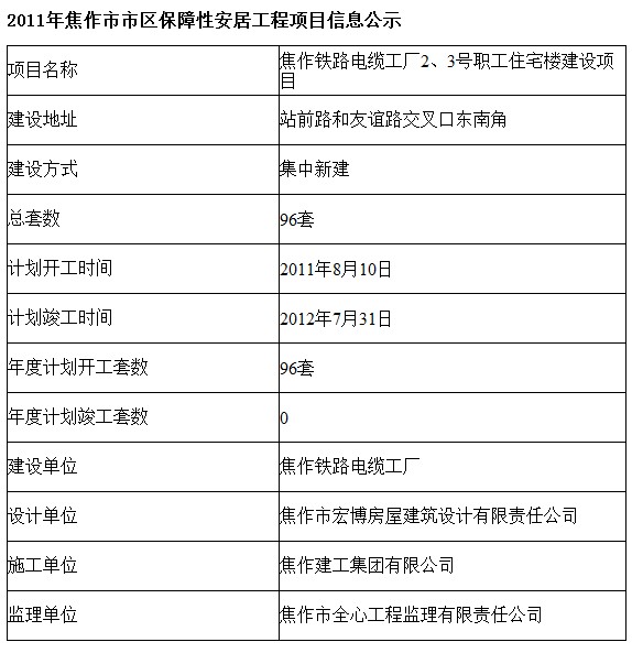 焦作铁路电缆工厂2、3号职工住宅楼建设项目