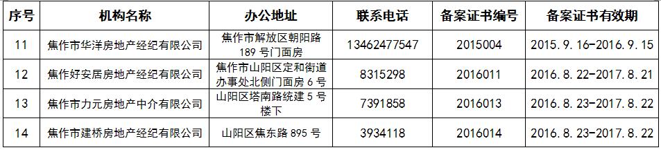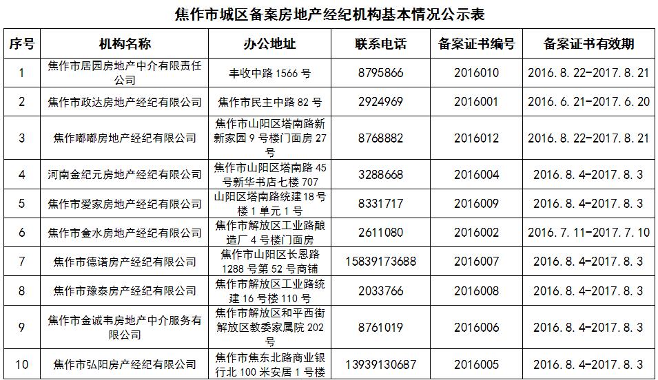 根据住建部《关于开展房地产中介专项整治工作的通知》(建房函〔2016〕111号)和省住建厅《关于进一步开展房地产中介专项整治工作的补充通知》(豫建房管函〔2016〕29号)的要求,我局组织人员对市城区房地产中介机构和从业人员的经营行为进行了检查。现将市城区14家备案的房地产经纪机构名单及基本情况予以公示。