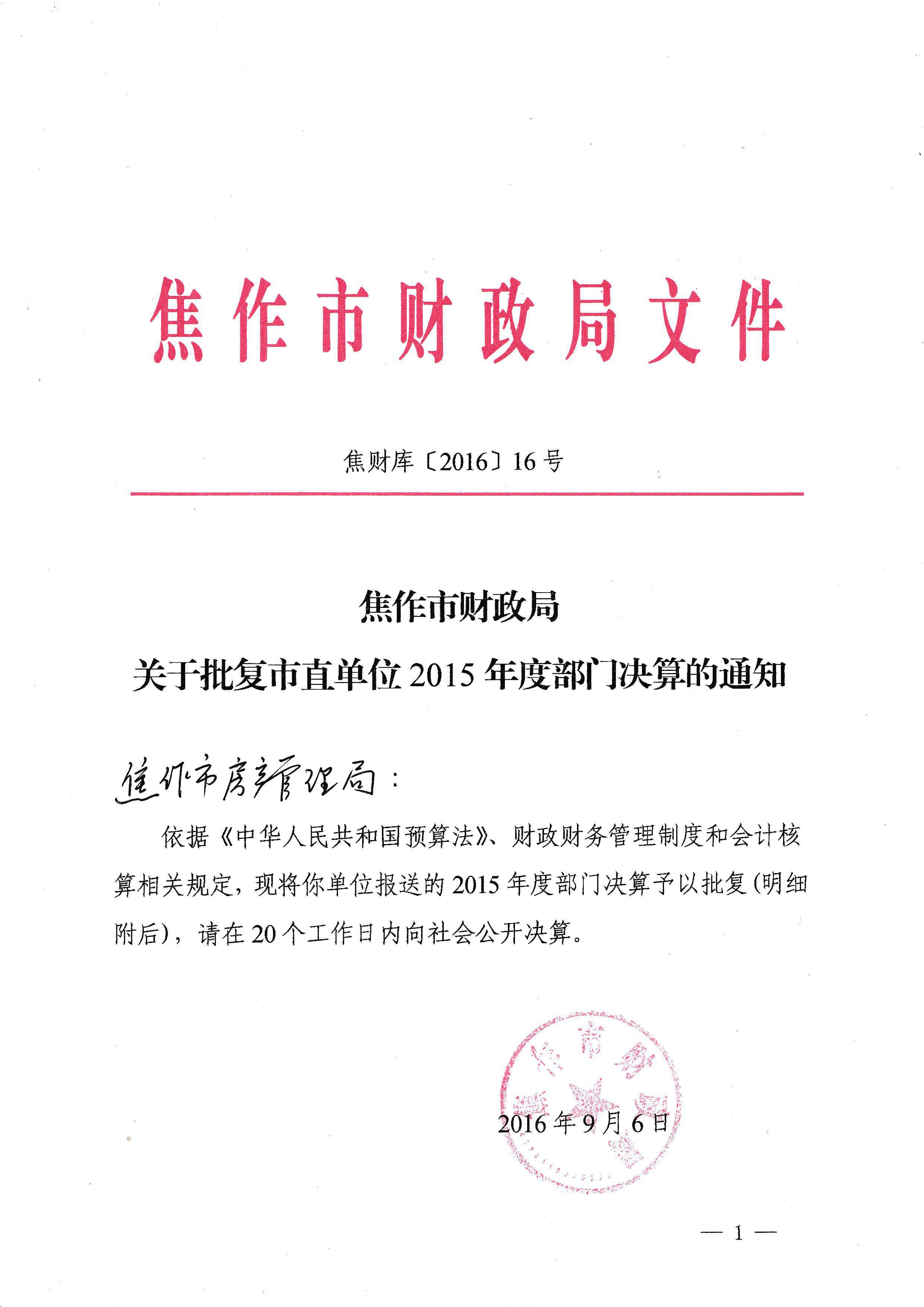 2015年度部门决算的通知