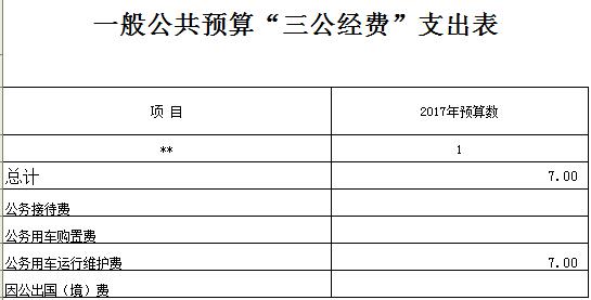 2017年三公经费中,因公出国费,公务接待费均为零,公务用车维护费7万元,合计7万元,与2016年持平。