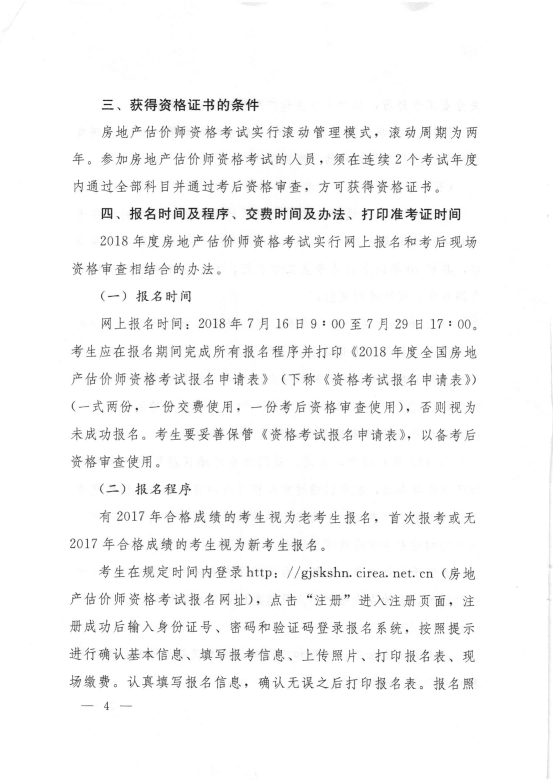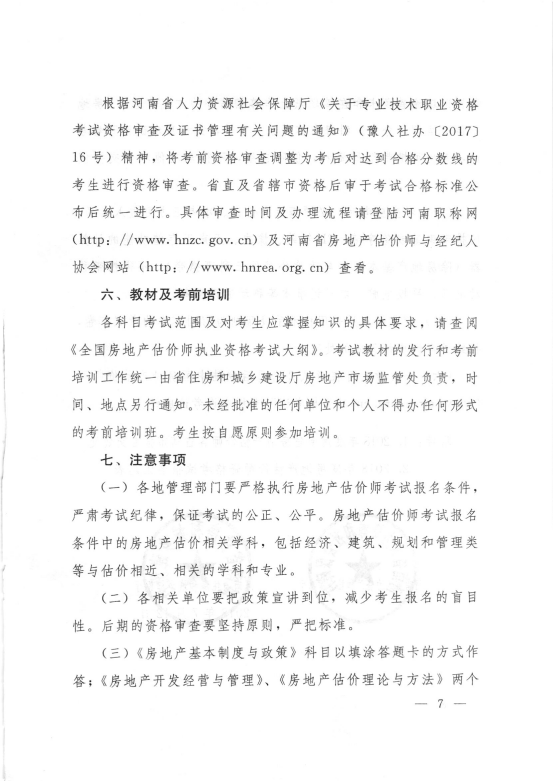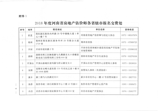 焦作市房产管理局 关于做好2018年度全国房地产估价师执业 资格考试考务工作的通知 各县(市)区房产管理部门、各有关单位: 根据《人力资源社会保障部办公厅关于2018年度专业技术人员资格考试计划及有关问题的通知》(人社厅发〔2017〕157号)和人力资源社会保障部办公厅、住房和城乡建设部办公厅《关于2018年度房地产估价师资格考试有关问题的通知》(人社厅发〔2018〕49号)精神,现就我市2018年度全国房地产估价师资格考试考务工作通知如下: 一、各县(市)房产管理部门要按照豫人社函〔2018〕316号要求,认真组织做好报名工作。 二、房地产估价师资格考试报名网址: http://gjskshn.cirea.net.cn 三、请于2018年7月30日8:00至8月3日18:00提交报名材料《考试报名申请表》一份、考务费到焦作市行政服务中心40号窗口。咨询电话:3568471 附件:河南省人力资源和社会保障厅 河南省住房和城乡建设厅文件《关于做好2018度房地产估价师资格考试考务工作的通知》豫人社函〔2018〕316号 二○一八年七月十六日 |