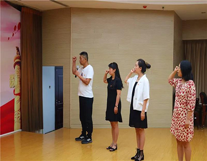 市房管中心迎七一表彰暨党建大讲堂活动 为庆祝建党98周年,近日,市房管中心在七楼会议室召开迎七一表彰暨党建大讲堂活动,百余名新老党员参加了活动。活动通过表先进、我宣誓、颂党恩、讲党课、谈感受、交党费等环节,深切表达了广大党员对党即将到来的98岁生日的衷心祝福。 伴随着《没有共产党就没有新中国》嘹亮的歌声,中心拉开迎七一表彰暨党建大讲堂活动帷幕。会议表彰了2018年度先进基层党组织和优秀共产党员,并号召全体党员学习先进,强化党员干部的政治意识、大局意识、核心意识、看齐意识,用党建高质量发展推动了房管事业取得更大的发展。四名七月份过政治生日的党员代表,在老党员的带领下,面对党旗进行了庄严宣誓。中心党委负责人为过政治生日的党员送上了生日贺卡。 我宣誓、颂党恩、交党费、谈感受 接着,冯俨等三名党员满怀激情诵读了《不忘初心、继续前进》诗朗诵,铿锵有力的朗诵之声,再次将大家的思绪带回98年前南湖上的那艘红船,那是中国革命的第一缕曙光! 中心党委负责人做了“共产党员要保持定力”的主题党课。结合个人体会和工作经验,深入浅出、引经据典,为全体党员干部上了一堂生动的党课。同时,要求全体党员牢记初心,不忘使命,处处以党员的标准严格要求自己,不折不扣落实市委、市政府的安排部署,进一步转变工作作风,千方百计搞好房管工作。 庆祝活动中,党员们纷纷表达对我党98岁生日的衷心祝福,畅谈了自己作为一名党员的感受,表示通过活动更加坚定自己加入中国共产党的决心。 |