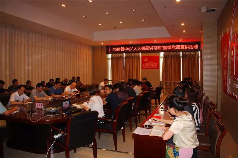 图 | “人人都是讲习师”暨“微党课”宣讲活动现场 为庆祝新中国成立70周年,进一步深入学习习近平新时代中国特色社会主义思想,市房管中心党委结合“新时代新思想新青年研习组”活动及下半年开展的“不忘初心、牢记使命”主题教育,于7月开始,集中一个月时间,组织开展“人人都是讲习师”暨“微党课”宣讲活动。首期宣讲活动于7月12日在机关七楼会议室拉开帷幕。 图 | “人人都是讲习师”暨“微党课”宣讲活动现场 首批宣讲人员分别从带好队伍、严于律己,以党为先、干字当头,艰辛创业、敢于创新,学以致用、提高素质等方面,结合自身实际,谈感受,说想法,将未来,深入浅出,引经据典,慷慨激昂,引得与会人员阵阵掌声。宣讲结束后,与会42名人员对这6人的党课进行了评比,评选出王军、孙以文2人为优秀宣讲师。 宣讲结束,中心党委主要负责同志对此次宣讲做了点评。此次宣讲活动开展得很及时,与开展“不忘初心,牢记使命”主题教育相结合,与庆祝中华人民共和国成立70周年结合,进一步加强了学习,提升了思想,很有意义。同时要求下一步要扎实深入开展宣讲活动,以新颖的办法,创意的主体认真准备,在提高思想理论水平方面下功夫,讲出成效。