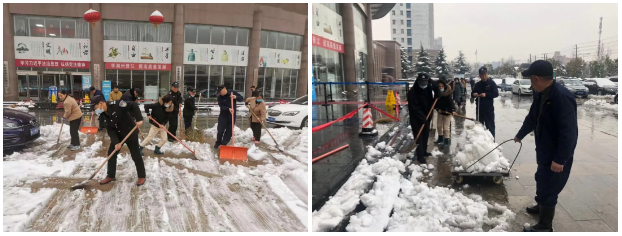图 | 居园公司全体员工清理积雪 24日晚突降大雪,为积极应对路面积雪、积冰给群众带来的影响,保障群众的财产和生命安全。中心积极组织工作人员进行扫雪和安全排查工作。 图 | 焦东房管所组织单位员工对所管辖的直管公房和公租房进行重点安全排查 25日上班前,居园公司全体员工就挥动铁锹、扫帚等工具,大干两个小时,使住房保障中心大院辖区道路恢复了整洁、畅通。焦东、焦西房管所组织单位员工清扫大院及院门外积雪,并对所管辖的直管公房和公租房特别是平房和顶层房屋进行重点安全排查,同时,对民馨苑廉租房小区多处压塌的树枝进行清理,确保了小区环境整洁和住户居住安全。 图 | 焦西房管所组织单位员工对所管辖的直管公房和公租房进行重点安全排查